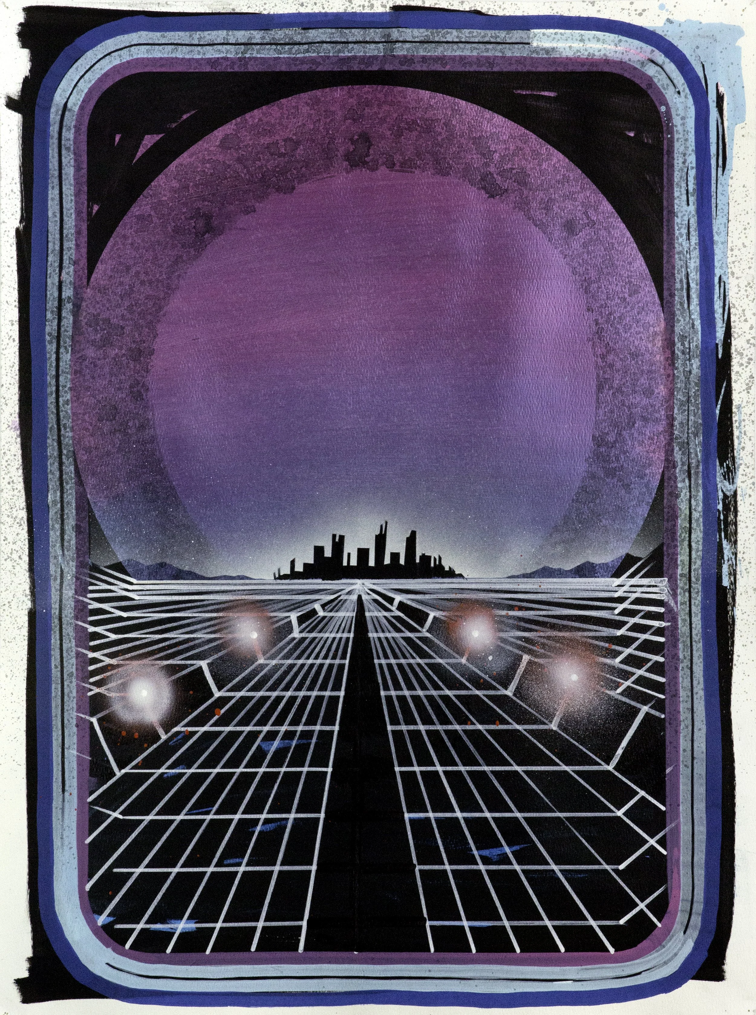 Camp Coldgrid, acrylic/ink/enamel on paper, 30 x 22 inches, 2017.